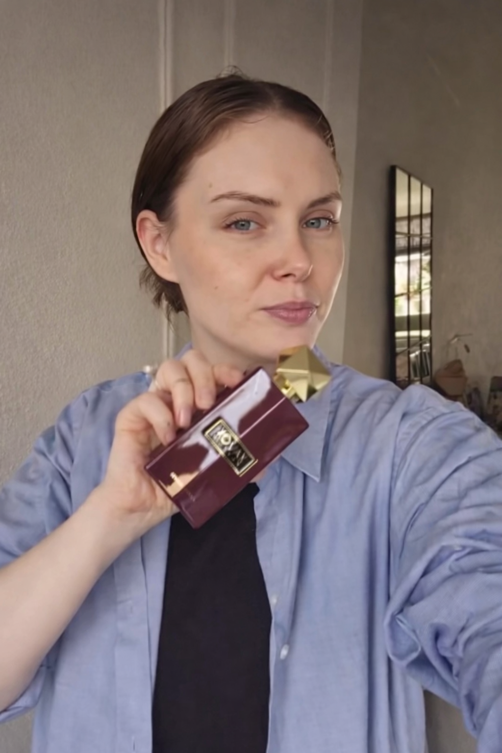 I was really curious about this fragrance, because the ingredients looked very promising. It opens with a true fruity burst from the first spray , cherries and strawberries. I can also definitely smell the leather in this scent. Unfortunately, it doesn’t last very long on my skin. But I think it’s a real winter fragrance: intense, and also quite sweet.